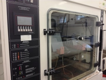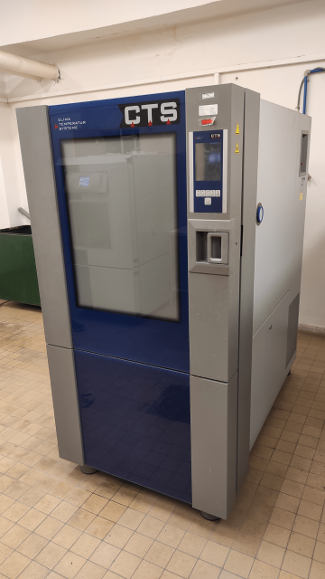 - V poslední době se celá řada odvětví jako automotive, strojírenství, letecký či vojenský průmysl zaměřují na klima testy s přítomnosti korozních kontaminantů/stresorů. Jsou to nejnáročnější zkoušky, které umí pouze ty nejsložitější a tím pádem i nejdražší korozní zařízení. Zkušebna disponuje takovýmto zařízením značky ASCOTT model AT1300/P/1 + ACC29 s kapacitou 2700 litrů s vlastní klimatizační jednotkou (viz foto výše). Toto zařízení je konstruováno i pro solné postřiky a zkrápění za mínusových teplot. Samo si umí omývat stěny, sušit horkým vzduchem atd. Dokáze realizovat stovky norem jako jsou například CCT, CETP 00.00-L-467 (pro Ford, Volvo, Scania), GM 9540P/GMW 14872 – pro GM motors. D17 (ECC) testy pro Renault. TPJLR pro Januar a Land-Rover, TSH 1555G pro Toyotu, SAE J2334 a mnoho dalších.